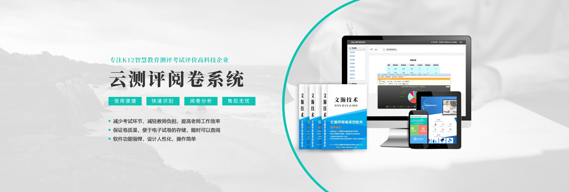 河北文瀚智考信息技術(shù)有限公司是一家專(zhuān)注教育的科技創(chuàng)新公司。本公司主營(yíng)四大板塊產(chǎn)品:網(wǎng)上閱卷系統(tǒng)、光標(biāo)閱讀機(jī)、答題卡和互動(dòng)觸控液晶一體機(jī)。公司在數(shù)據(jù)處理產(chǎn)品領(lǐng)域(OMR)推出了一系列具有快捷,簡(jiǎn)便,實(shí)用產(chǎn)品,···